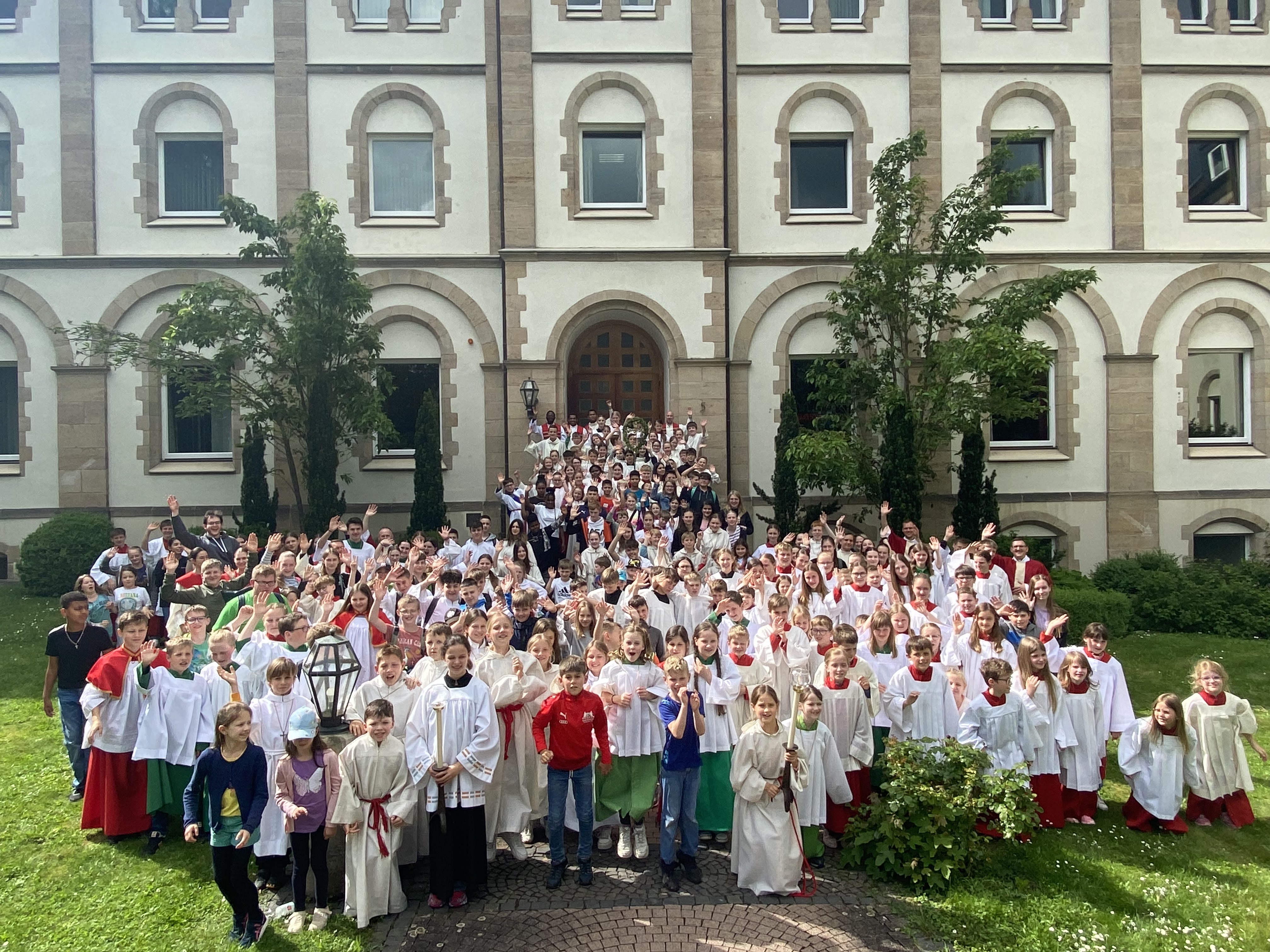 Auch im Jahr 2025 wollen wir uns wieder gemeinsam mit den OMIs im Bonifatiuskloster in Hünfeld zum Messdienertag treffen. Der Tag bietet dir die Möglichkeit, sich zu vernetzen – sowohl horizontal mit den anderen Messdienergruppen als auch vertikal in Verbindung mit Gott.
